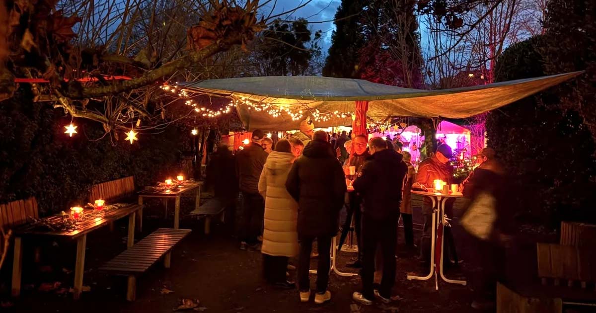 Zum ersten Mal wurden dafür im Hospizgarten Weihnachtshütten sowie Getränke- und Essensstände aufgebaut und mit stimmungsvoller Dekoration und Lichtern eine besonders adventliche Atmosphäre geschaffen.